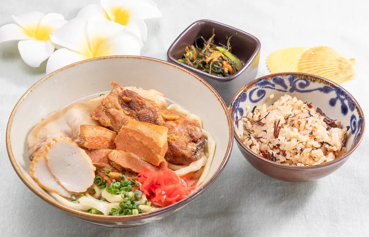 「ハーフラフテー丼」または「ハーフソーキ丼」に